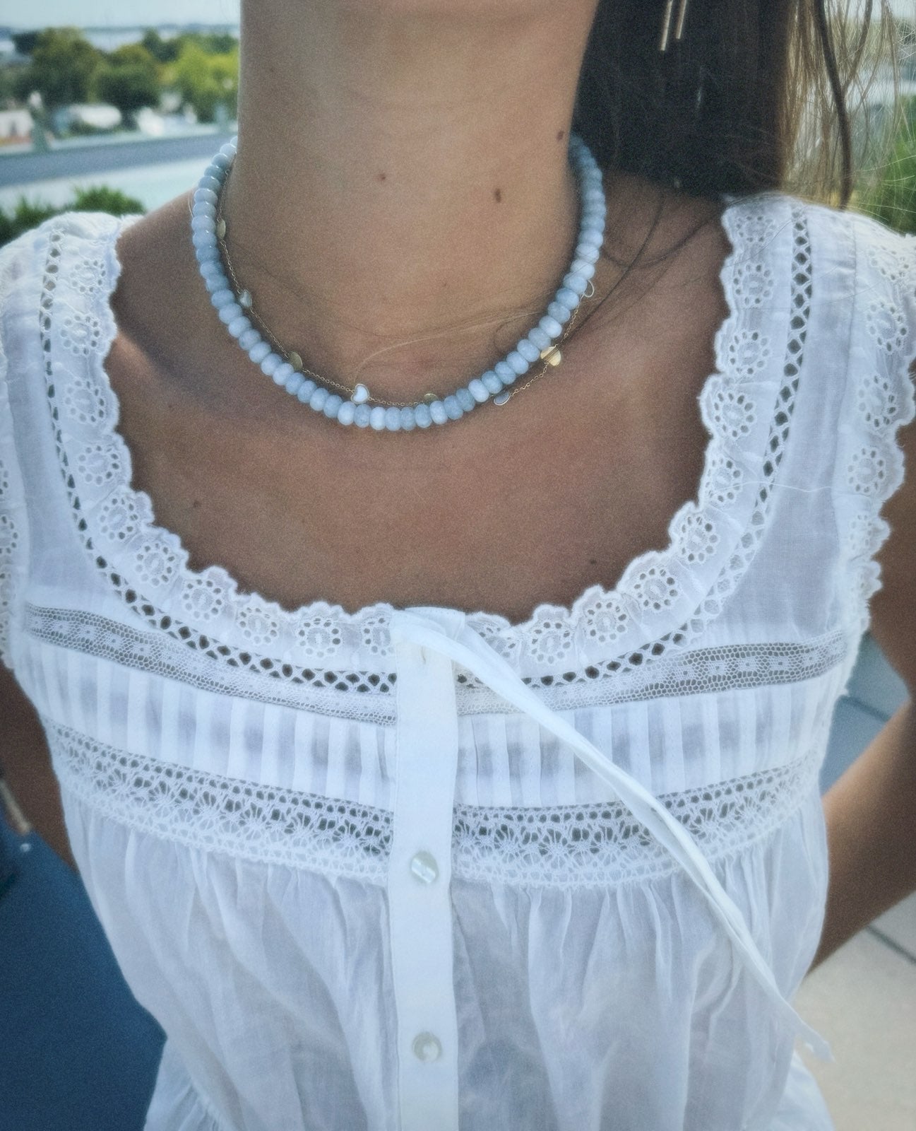 16.5 inch Aquamarine stone with a gold filled lobster claw or pavé diamond carabiner!